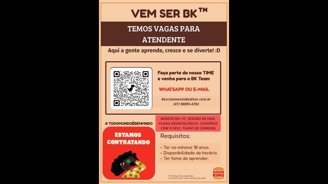Estamos em busca de um Atendente para se juntar à nossa equipe no Burger King. Como parte da equipe, você será responsável por garantir que nossos clientes tenham uma experiência inesquecível em cada visita. Este é um ótimo momento para se juntar a uma marca reconhecida globalmente por sua qualidade e serviço excepcional.